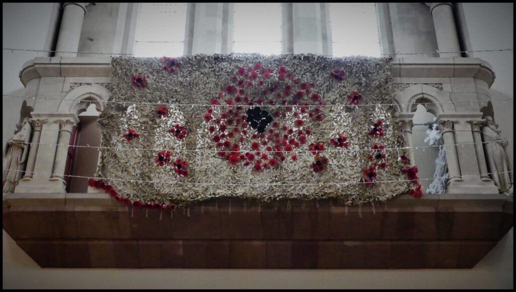 230 (Congleton) Squadron Royal Air Force Air Cadets also showcased their creativity with a striking handmade flag made from camouflage netting, wire, and recycled bottles to form poppies. When complete, it will feature over 600 poppies — one for every name inscribed on the Cenotaph — symbolising remembrance through sustainability, teamwork, and respect.