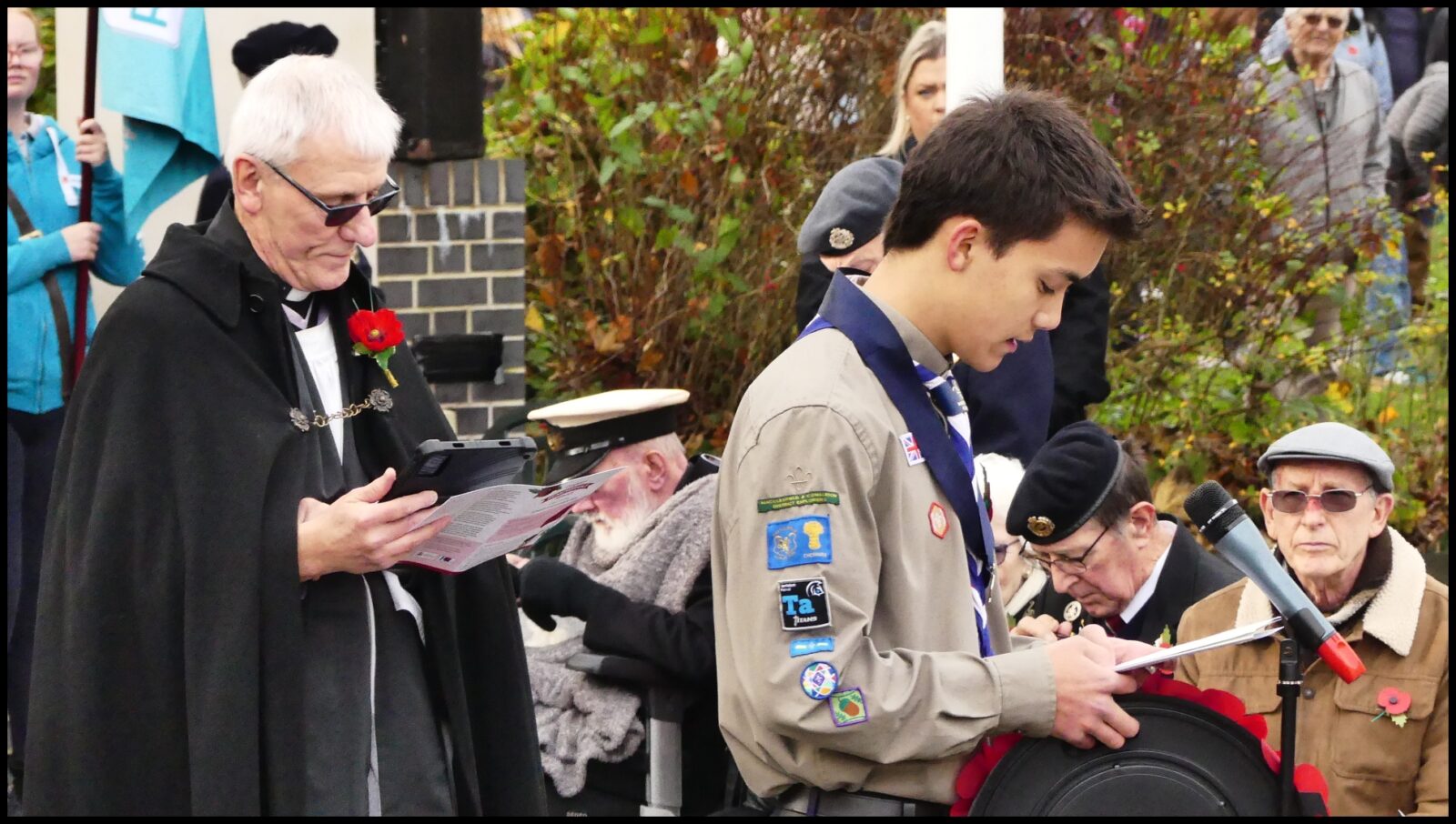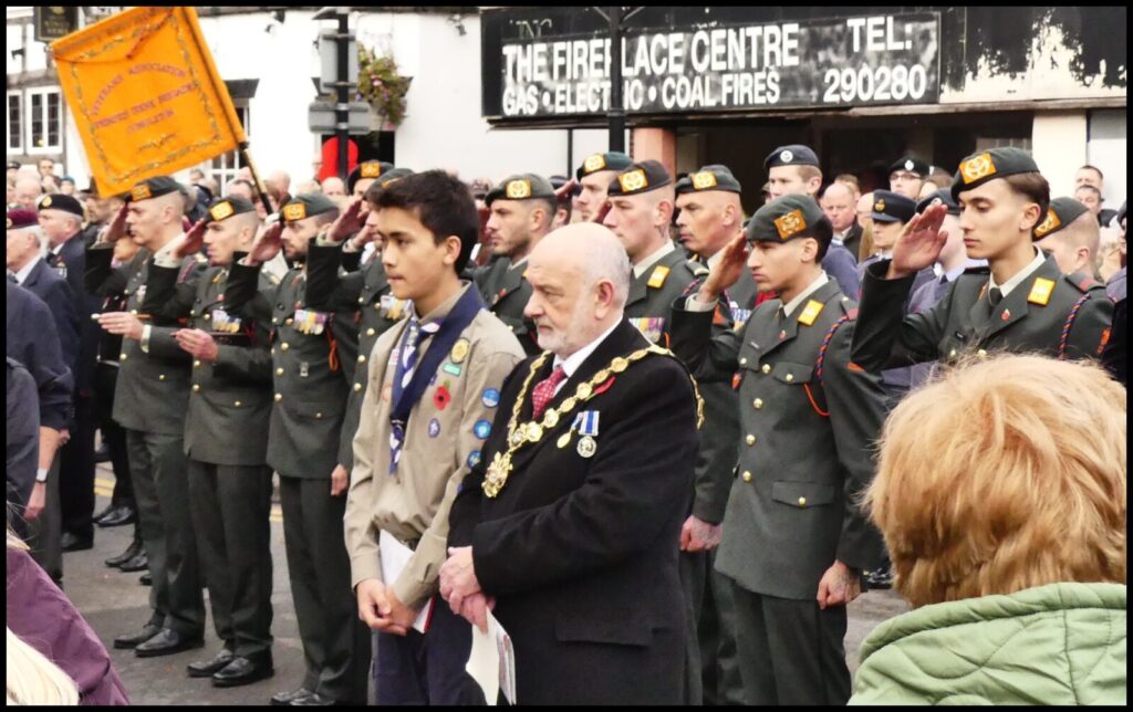 The parade, led by the 2493 Sqn Alsager Air Cadets Band, featured an impressive line-up of veterans, youth groups, emergency services, civic dignitaries, and members of the armed forces. The outdoor service at the Cenotaph was conducted by Rev. Ian Enticott of All Saints Congleton, with Steve Evans of the Congleton Branch of the Royal British Legion serving as Master of Ceremonies and Parade Marshal.